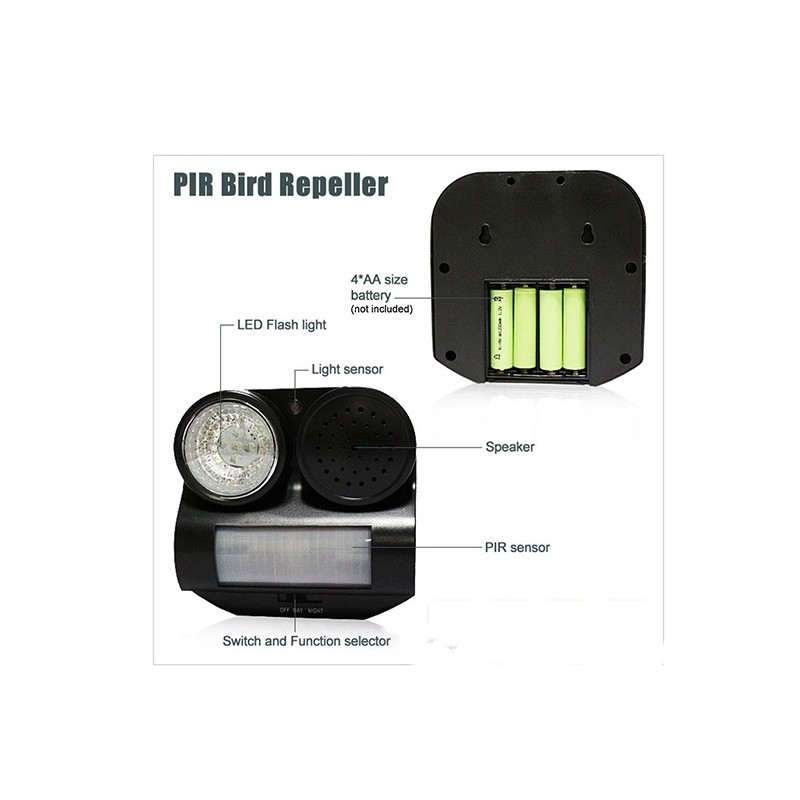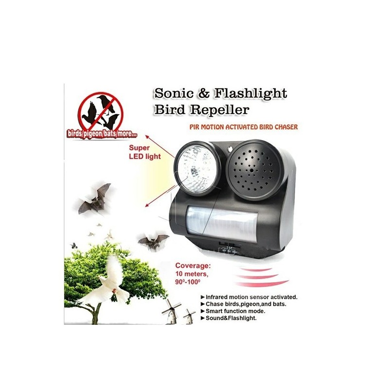 Звуков електронен апарат за прогонване на птици с датчик за движение до 10 м.