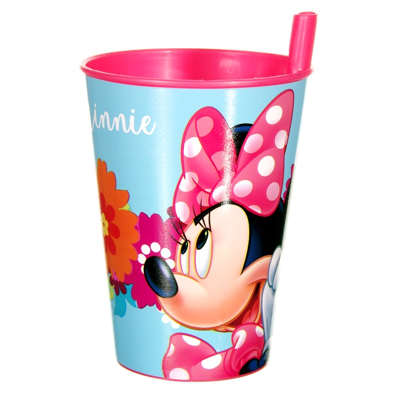 Пластмасова чаша за деца с картинка на любимата анимационна героиня на всяко малко момиченце Мини Маус и вградена сламка.
