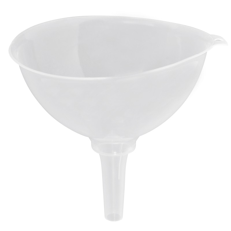 Класическа пластмасова фуния в бял цвят с практична дръжка.