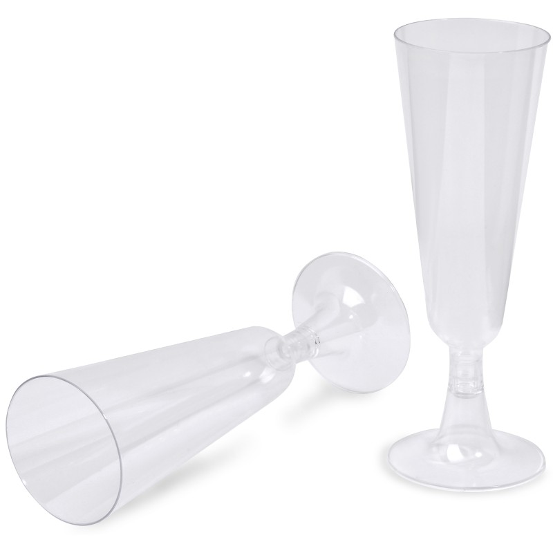 Комплект от 6 броя чаши за шампанско за еднократна употреба, изработени от прозрачна пластмаса със столче.
