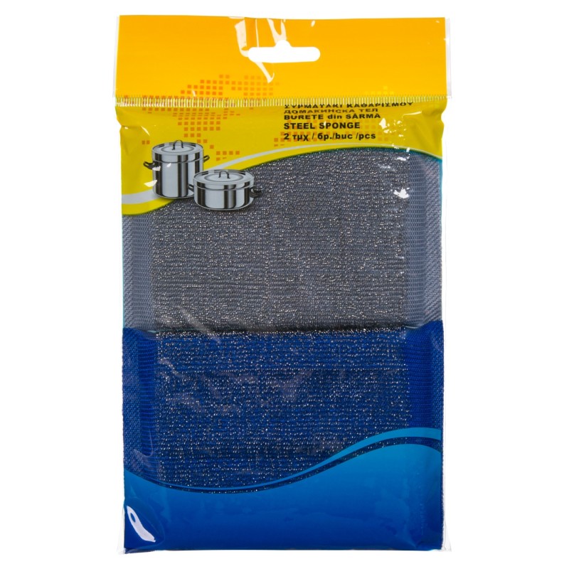 Комплект от 2 броя домакинска тел в сив и син цвят за почистване на кухненски съдове и прибори.