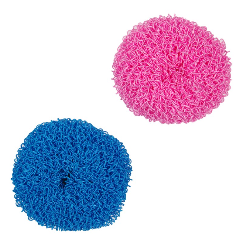 Комплект от 2 броя домакинска тел в розов и син цвят за почистване на кухненски съдове и прибори.