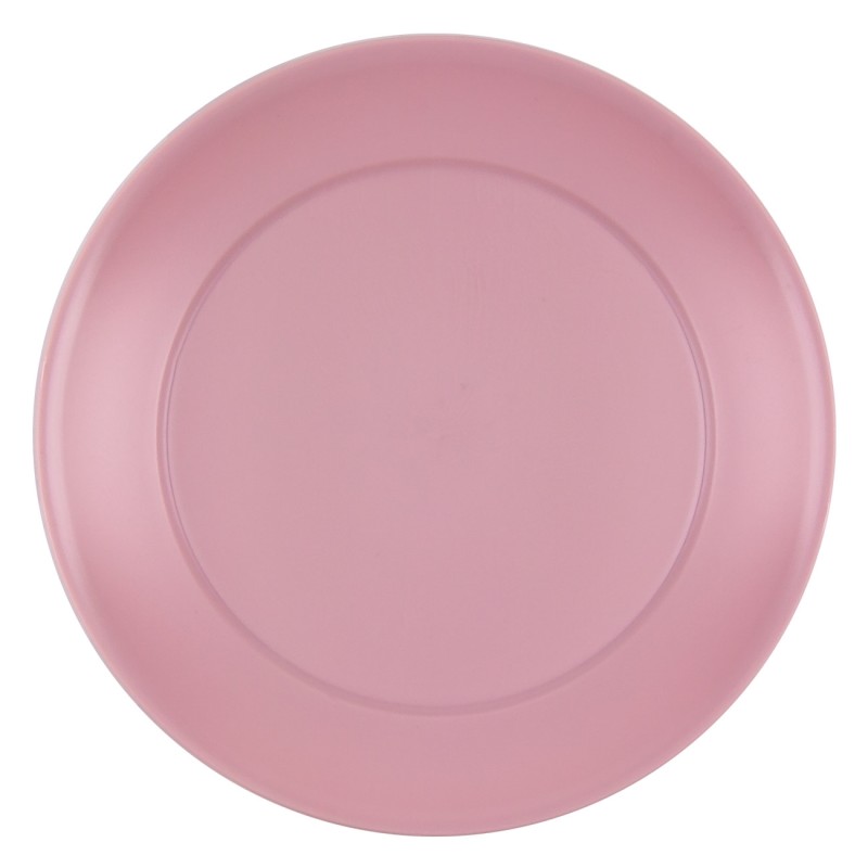 Чиния за основно ястие, изработена от здрава и устойчива пластмаса в цвят пепел от рози.