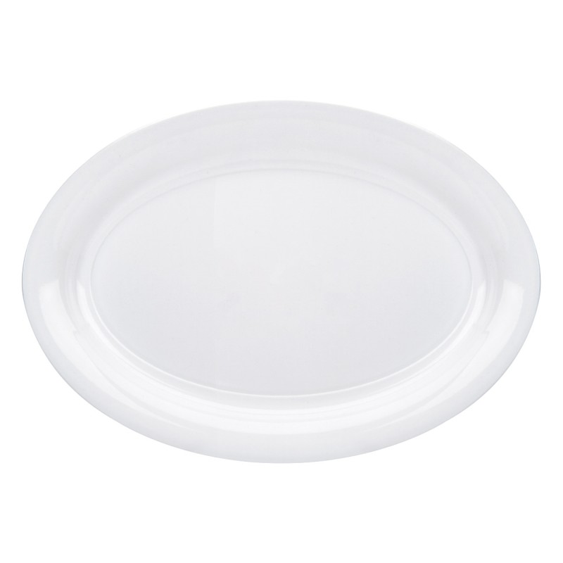 Голяма универсална чиния, изработена от качествена пластмаса в бял цвят с елипсовидна форма.