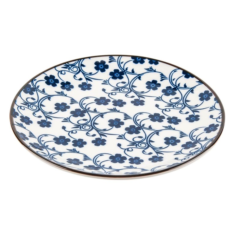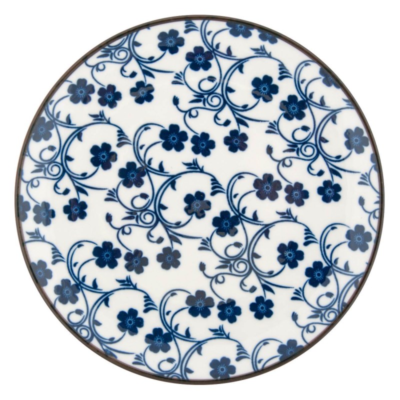 Десертна чиния, изработена от висококачествен порцелан в бял цвят с флорален принт на сини цветя.