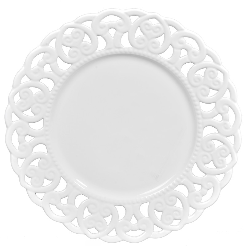 Чиния за основно ястие, изработена от висококачествен порцелан в бял цвят с красива дантелена рамка.