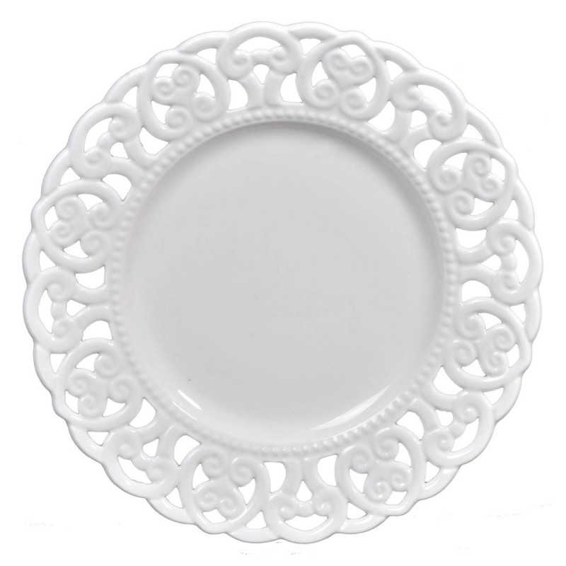 Чиния за плодове, изработена от висококачествен порцелан в бял цвят с красива дантелена рамка.