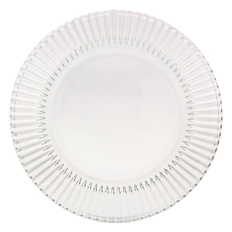 Чиния за хранене и сервиране, изработена от висококачествено прозрачно стъкло с вълнообразна рамка.