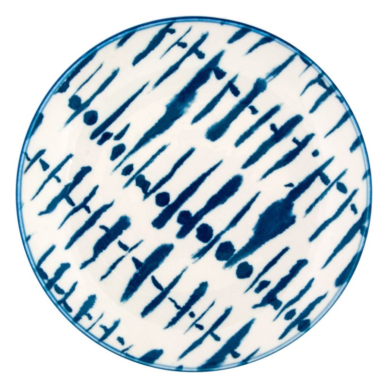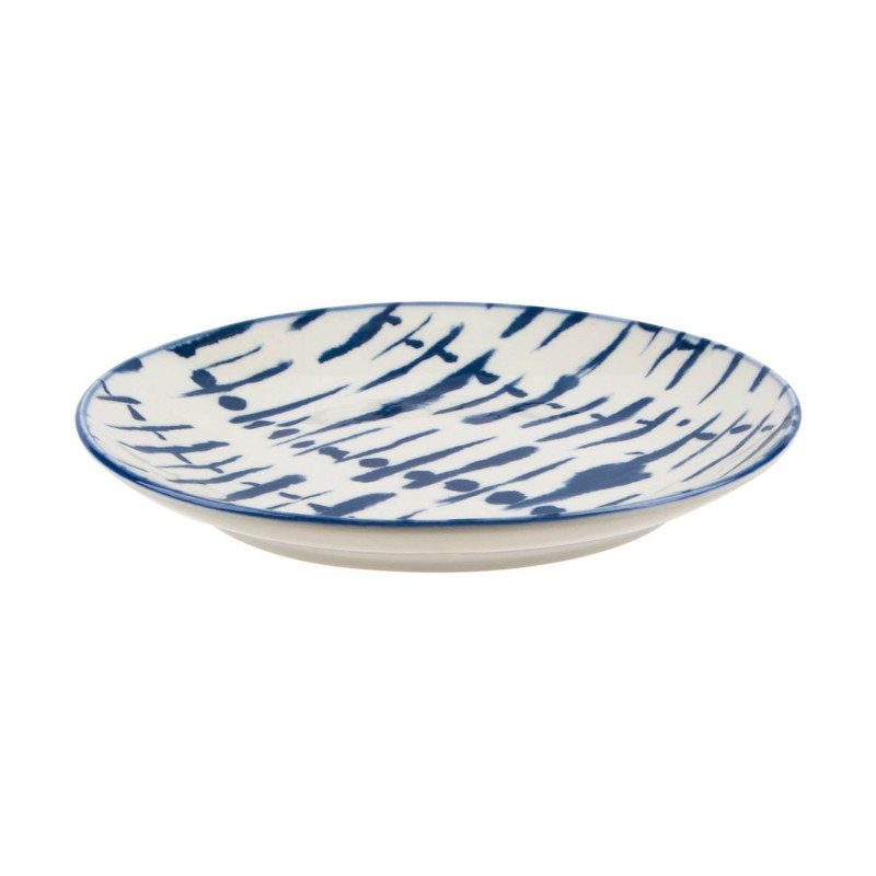 Чиния за сервиране и хранене, изработена от висококачествен порцелан в бял цвят със сини шарки.