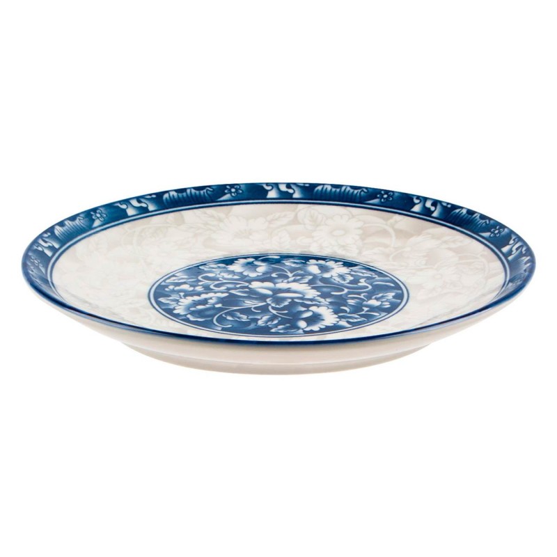Универсална чиния за хранене и сервиране, изработена от висококачествен порцелан с подсилени ръбове и цветна декорация, представенa като съчетание от флорални гравюри в английски стил, който остава популярна тема в сервизните прибори.