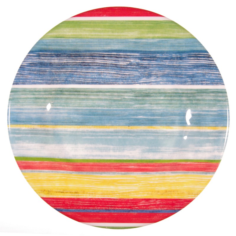 Универсална чиния за хранене и сервиране, изработена от меламин с многоцветно райе.