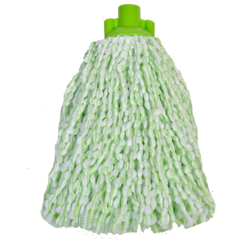Бърсалка за под тип конци в зелен цвят, предназначена за почистване на различни гладки повърхности - ламиниран паркет, плочки, балатум и други.