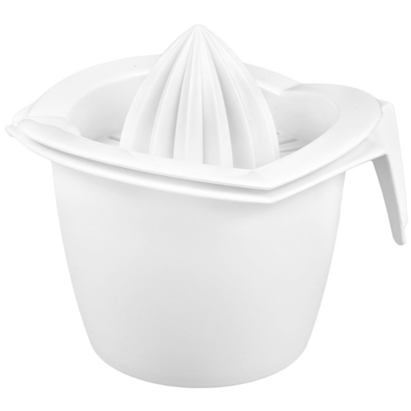 Ръчна цитрус преса за изтискване на плодове, изработена от качествена пластмаса в бял цвят с практична купа за събиране на сока.