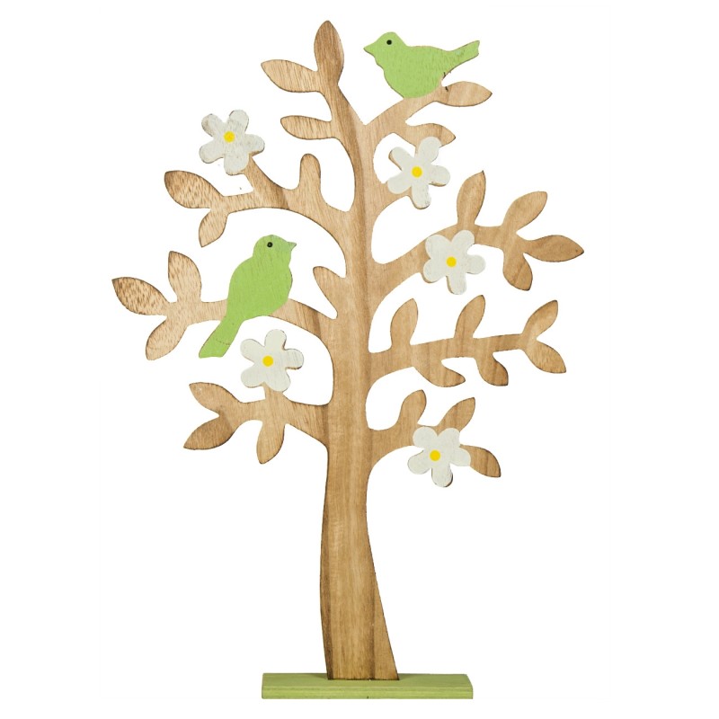 Настолна декорация, изработена от дървесина във формата на реалистично дърво с птички и цветя.