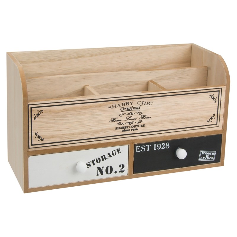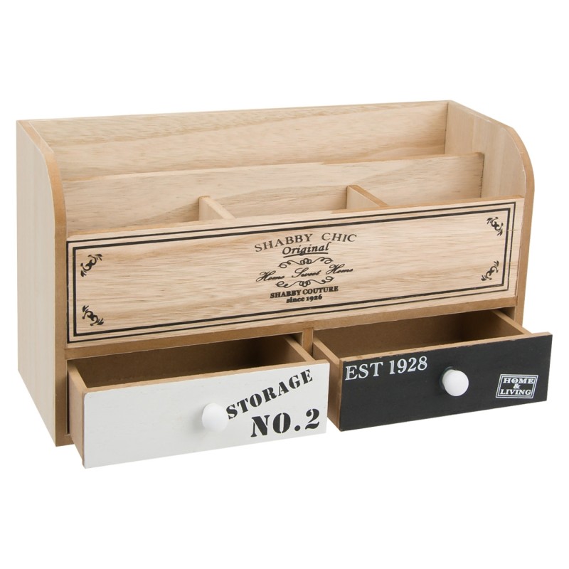 Декоративна кутия във винтидж стил за съхранение на писма с 4 отделения и 2 чекмеджета, изработена от висококачествена дървесина в естествен цвят.