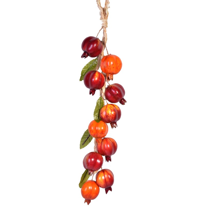 Декоративна плитка с изкуствени плодове нар, изработена от качествена пластмаса в естествени цветове.
