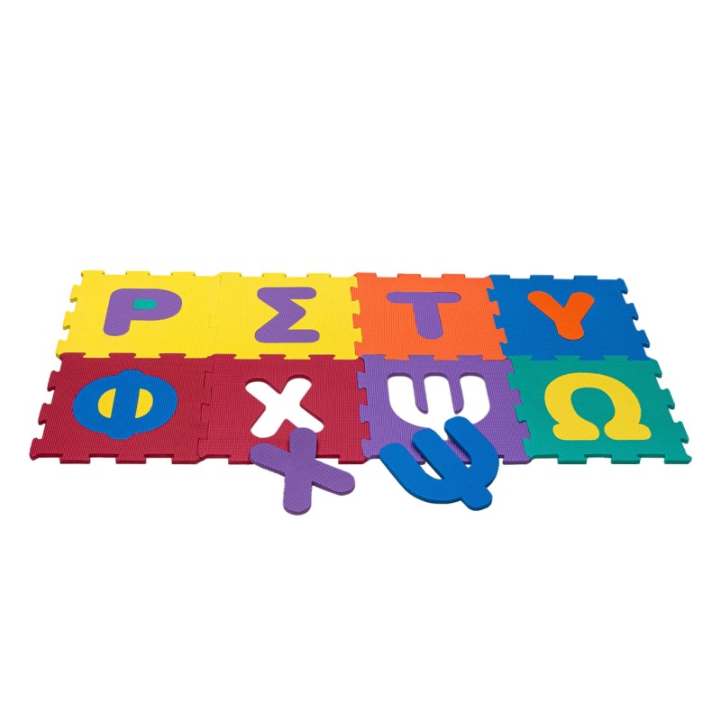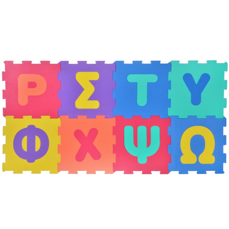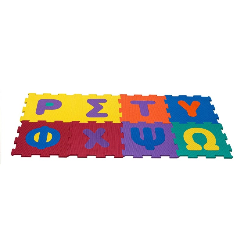 Декоративна постелка тип пъзел от 8 части с различни букви от азбуката, изработени от висококачествен EVA материал в различни цветове, които се сглобяват бързо и лесно.
