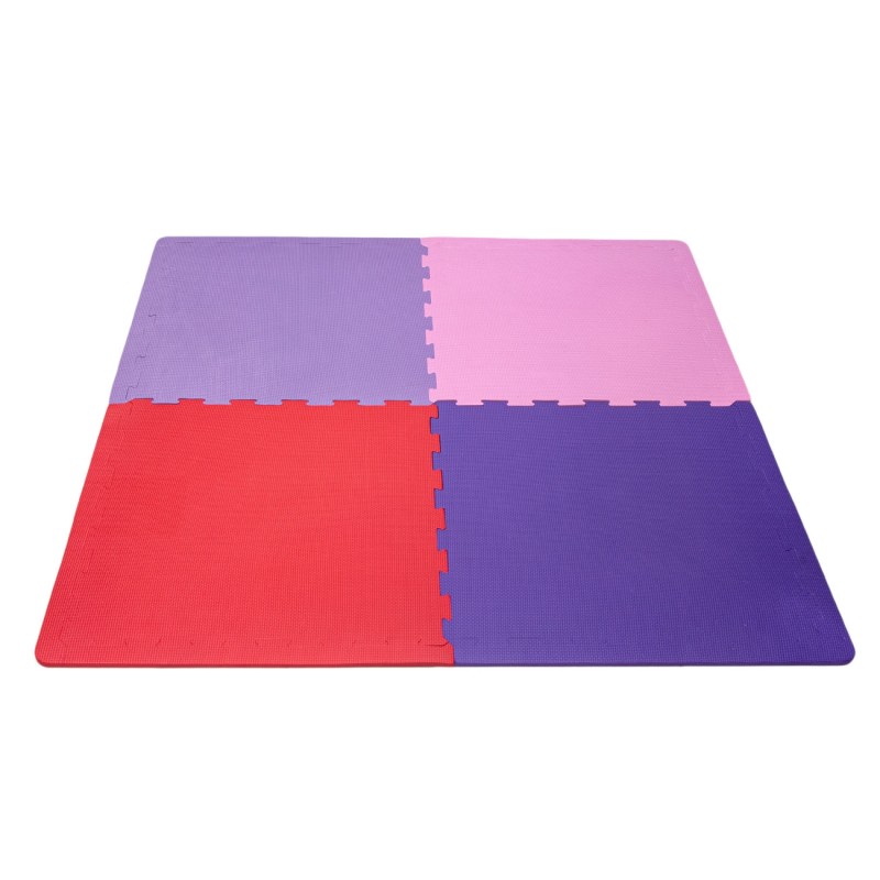 Комплект от 4 многофункционални постелки тип пъзел, изработени от висококачествен EVA материал в лилаво-розови нюанси, които се сглобяват бързо и лесно.