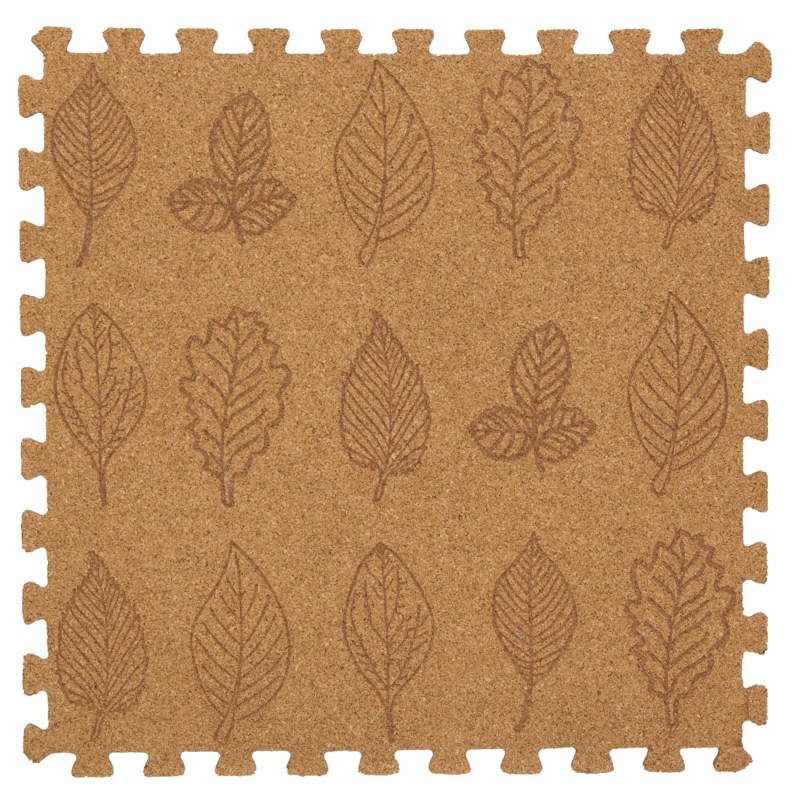Декоративна постелка тип пъзел, изработена от висококачествен материал ЕVA и корк в кафяв цвят с принт на есенни листа.