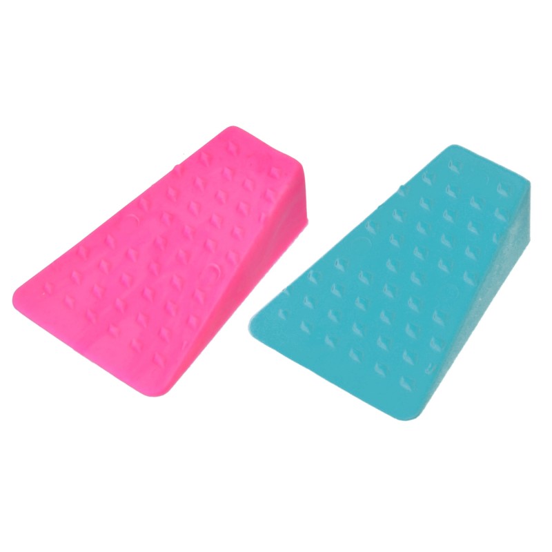 Комплект от 2 броя клин стопери за врата, изработени от силикон в син и розов цвят.