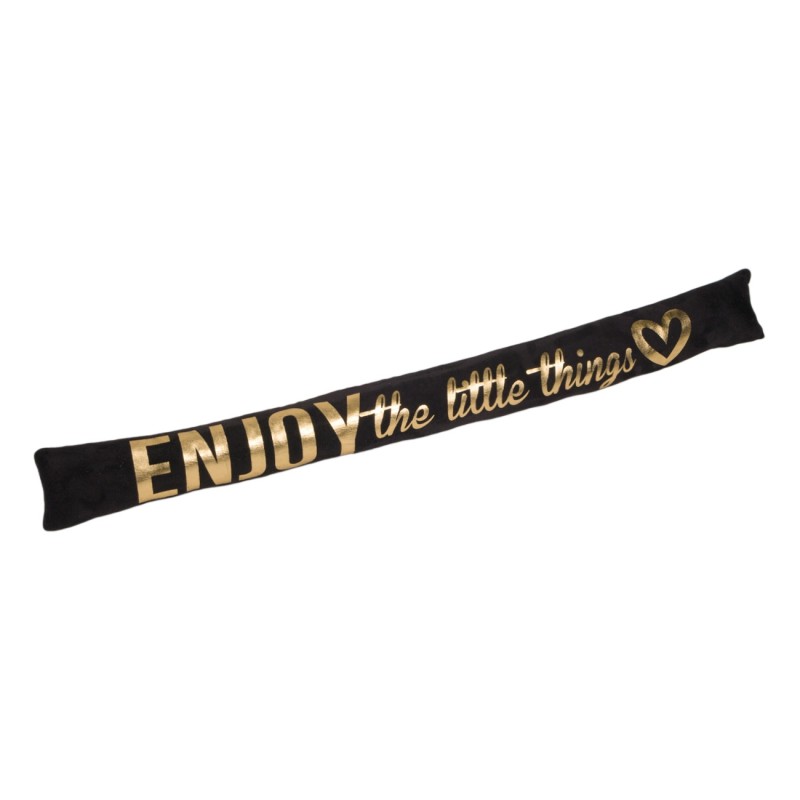 Декоративен стопер за врата, изработен от полиестер в черен цвят със златист надпис Enjoy the little things.