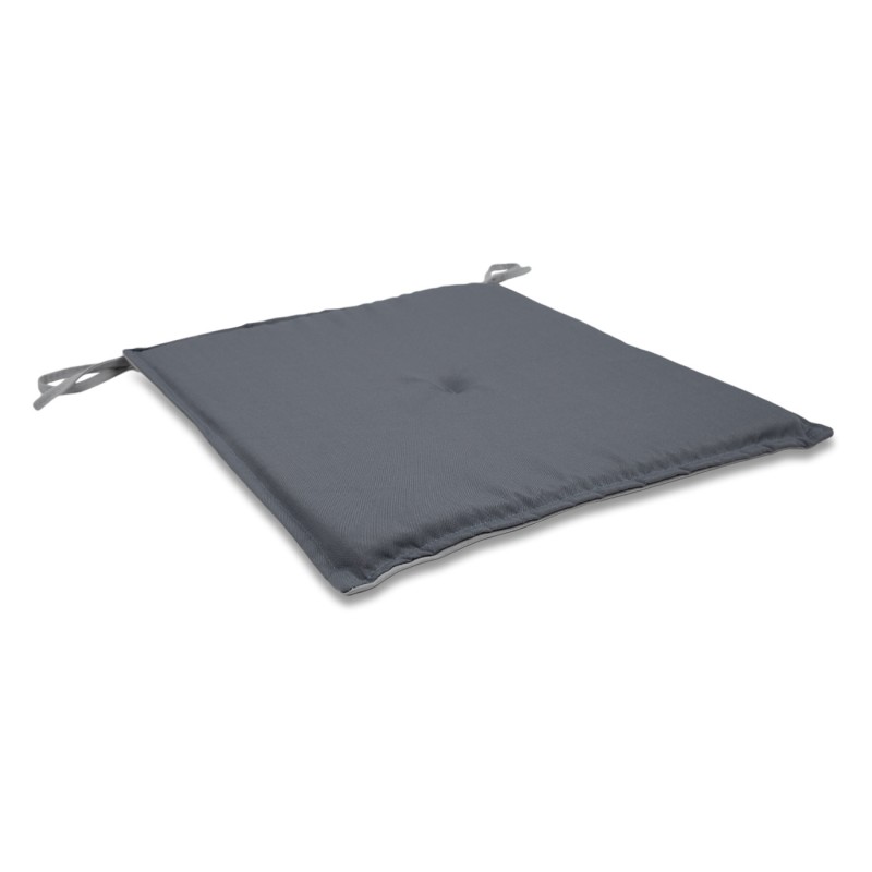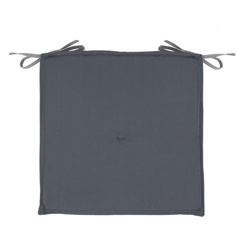 Възглавница за стол на открито, лятна декорация антрацитно сиво, двустранна, без цип. Изработена е от водоустойчива материя и шнурове от същата материя за здраво завързване.