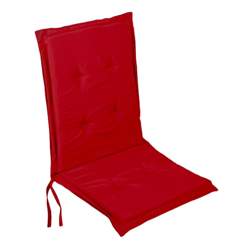 Възглавница за стол с гръб, за открито, лятна декорация, двустранна, тухленочервена, без цип. Изработена е от водоустойчива материя и шнурове от същата материя за здраво завързване.