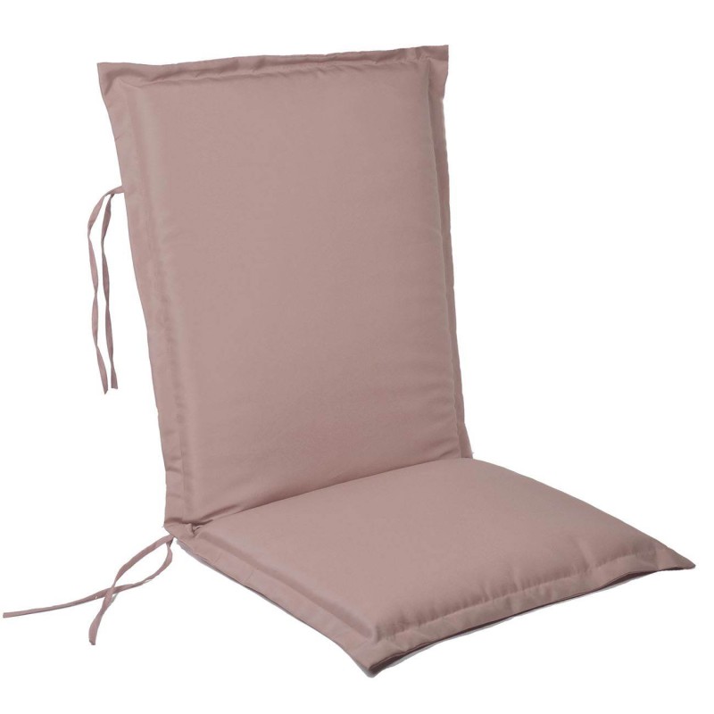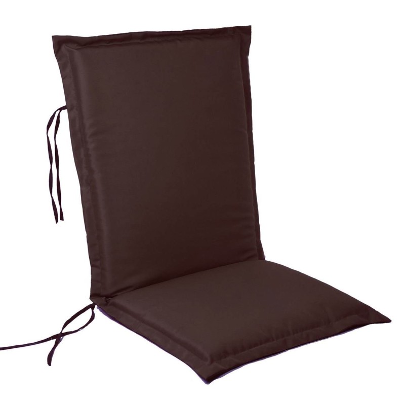 Декоративна възглавница за стол с облегалка, изработена от полиестер с две лица - в тъмно кафяво и бежово и функционални връзки за стабилно прикрепване към стола.