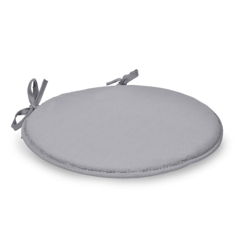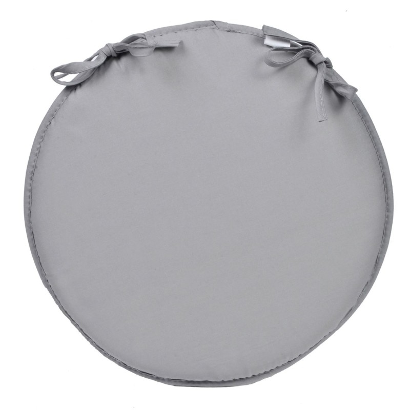 Кръгла декоративна възглавница за стол, изработена от памук в сив цвят с функционални връзки за удобно закрепване към стола.