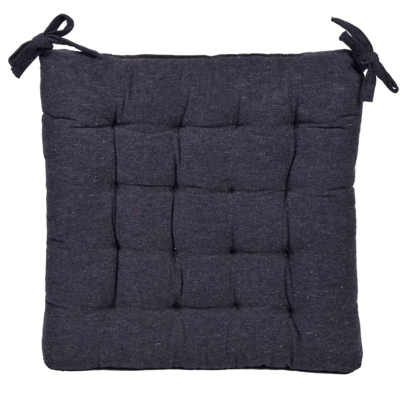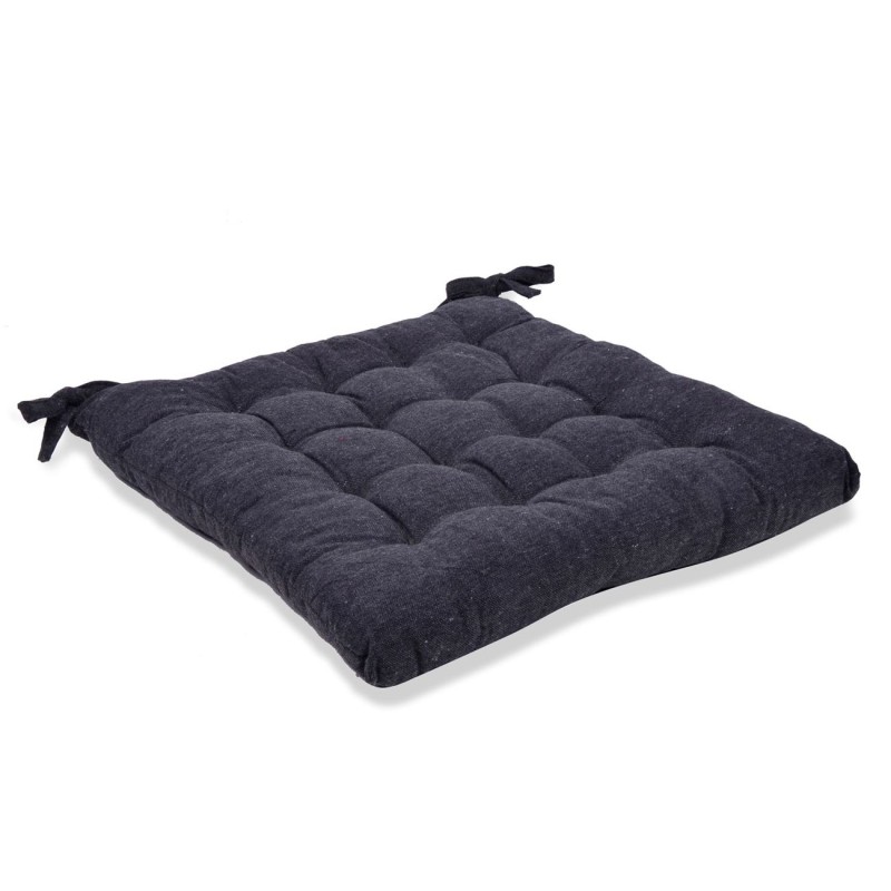 Квадратна декоративна възглавница за стол, изработена от памук в черен цвят с практични връзки.