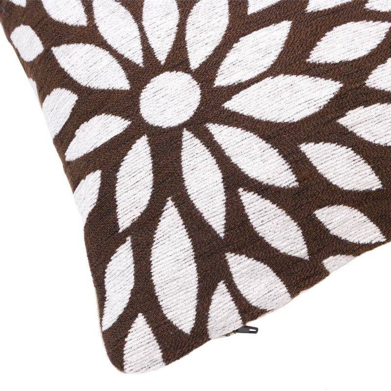 Квадратна декоративна възглавница с цип, изработена от полиестер с флорален принт със стилизирани цветя в кафяво и бяло.