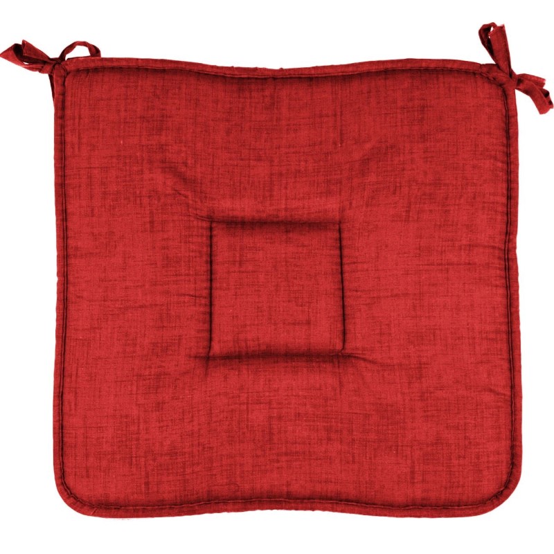 Квадратна декоративна възглавница за стол, изработена от памук, полиестер и дунапрен в червен цвят с функционални връзки.