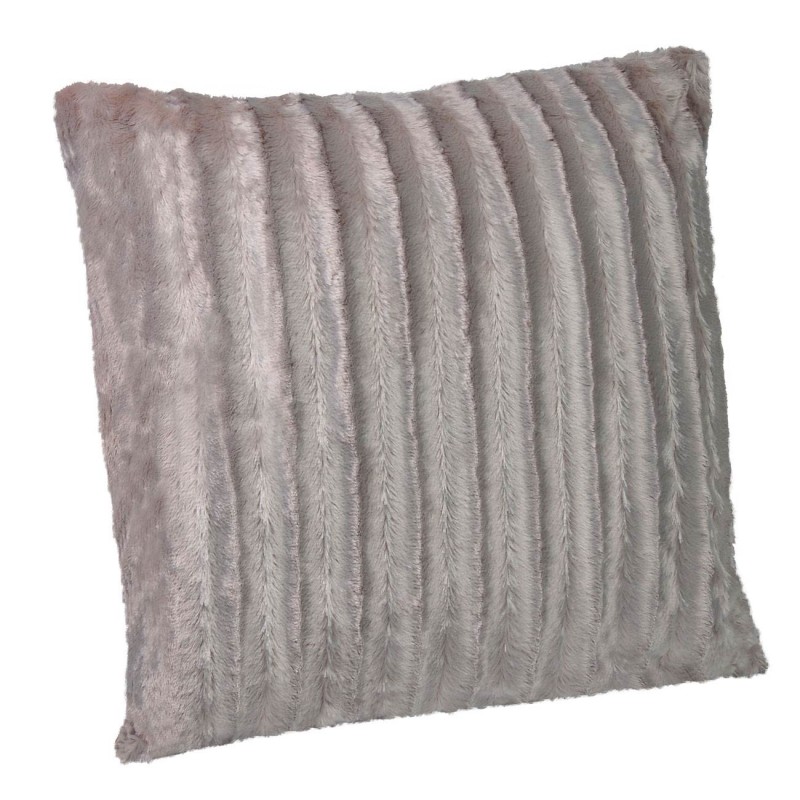 Квадратна декоративна възглавница с цип, изработена от полиестер в бежов цвят с релефни раирани шарки.