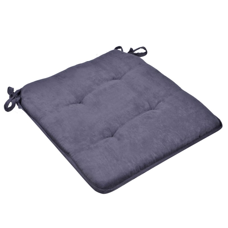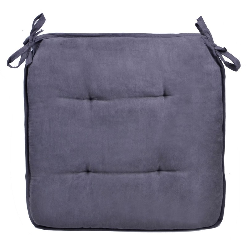 Квадратна декоративна възглавница за стол, изработена от полиестер в цвят графит с удобни връзки за лесно закрепване към стола.