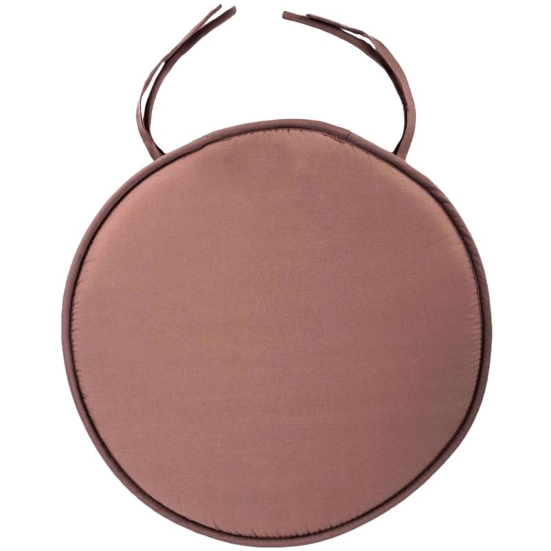 Кръгла декоративна възглавница за стол, изработена от полиестер в кафяв цвят с удобни връзки за бързо и лесно закрепване към стола.