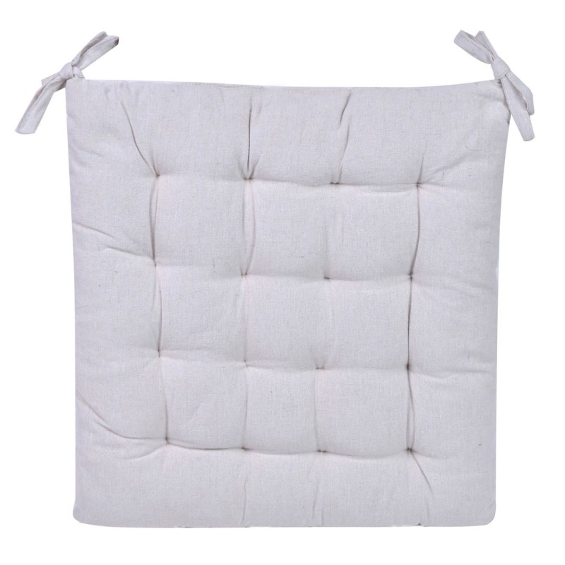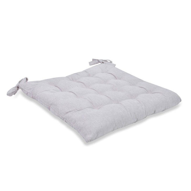 Квадратна декоративна възглавница за стол, изработена от памук в светло сив цвят с функционални връзки.