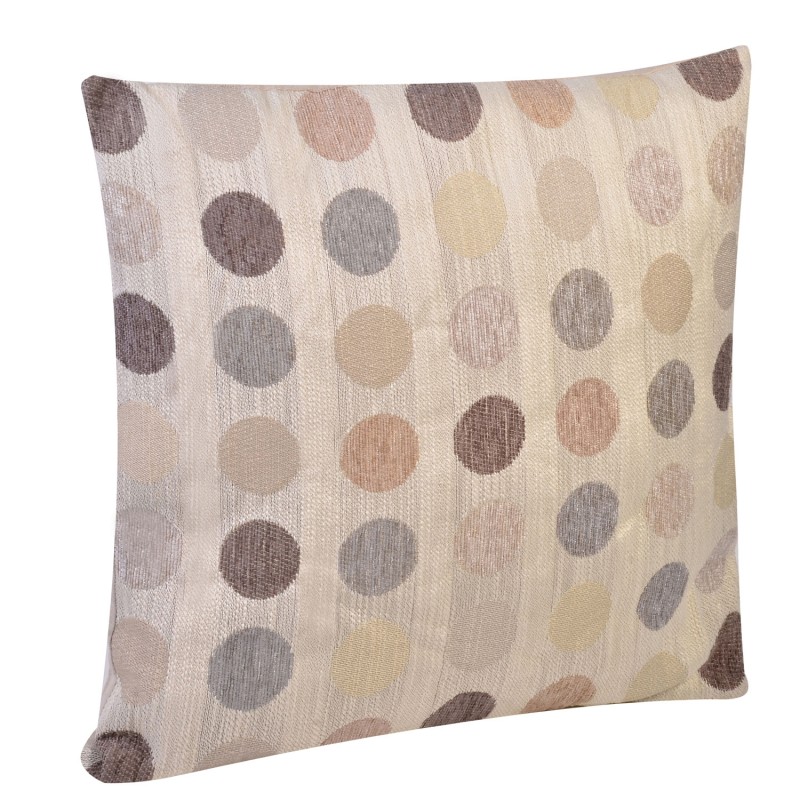 Декоративна възглавница с цип, изработена от полиестер в бежов цвят с принт на сиви и кафяви точки.