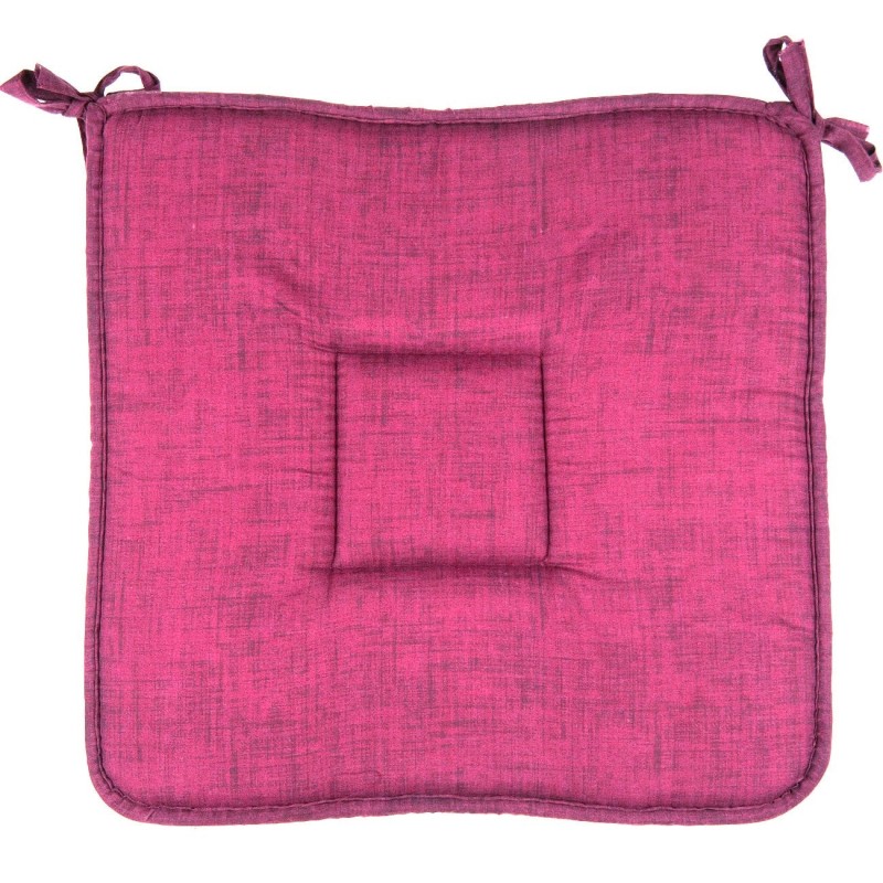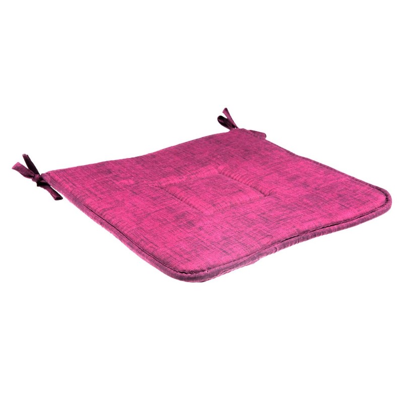 Квадратна декоративна възглавница за стол, изработена от памук, полиестер и дунапрен в цикламен цвят с функционални връзки.