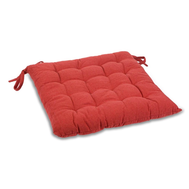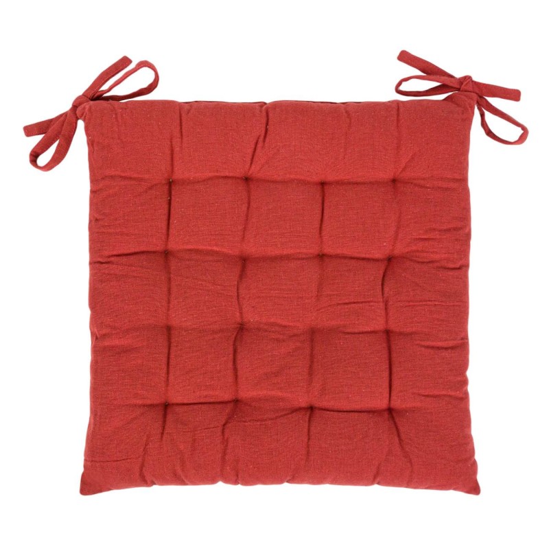 Квадратна декоративна възглавница за стол, изработена от памук в цвят керемида с практични връзки.