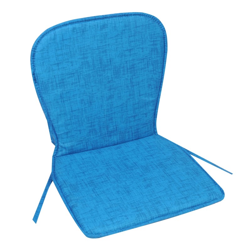 Декоративна възглавница за стол с облегалка, изработена от памук, полиестер и пяна в светло син цвят с практични връзки за стабилно прикрепване към стола.