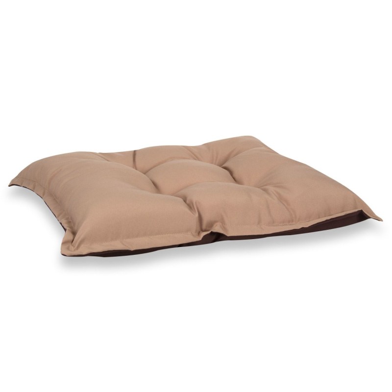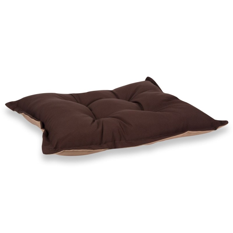 Квадратна декоративна възглавница за стол, изработена от полиестер с две лица - в бежово и тъмно кафяво.