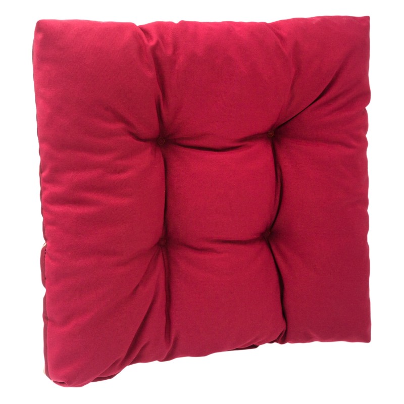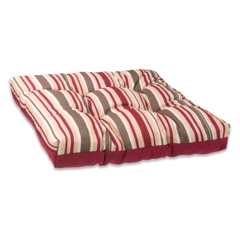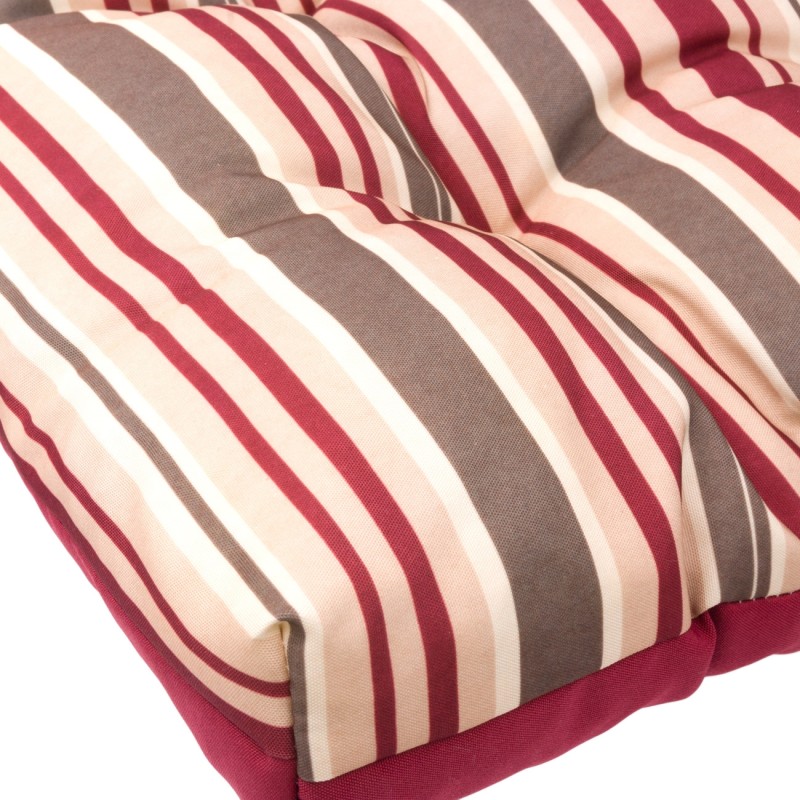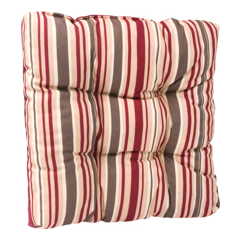 Квадратна декоративна възглавница за стол, изработена от полиестер с две лица - в бордо и с раирани шарки в бежово и бордо.