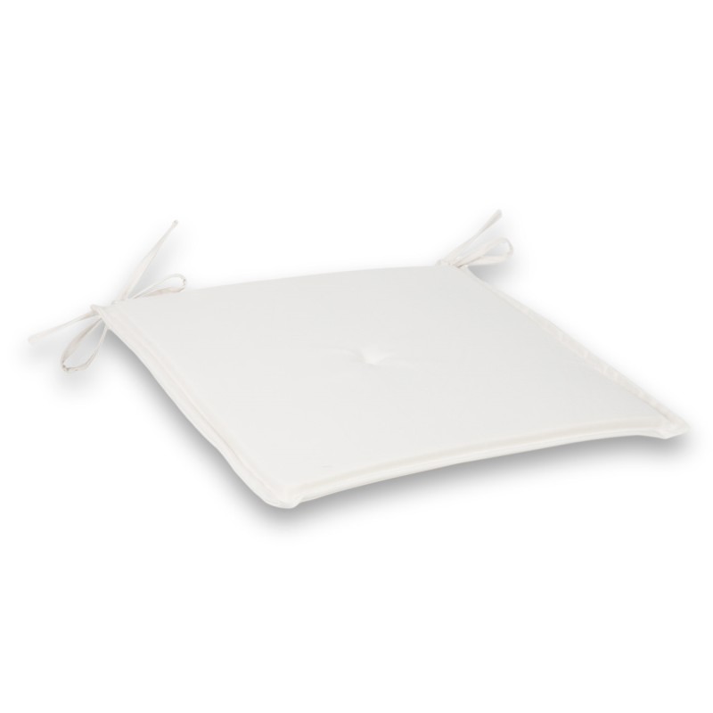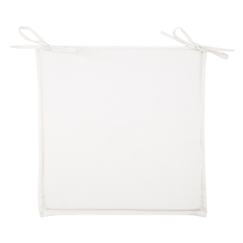 Квадратна декоративна възглавница за стол, изработена от полиестер в бял цвят с практични връзки.