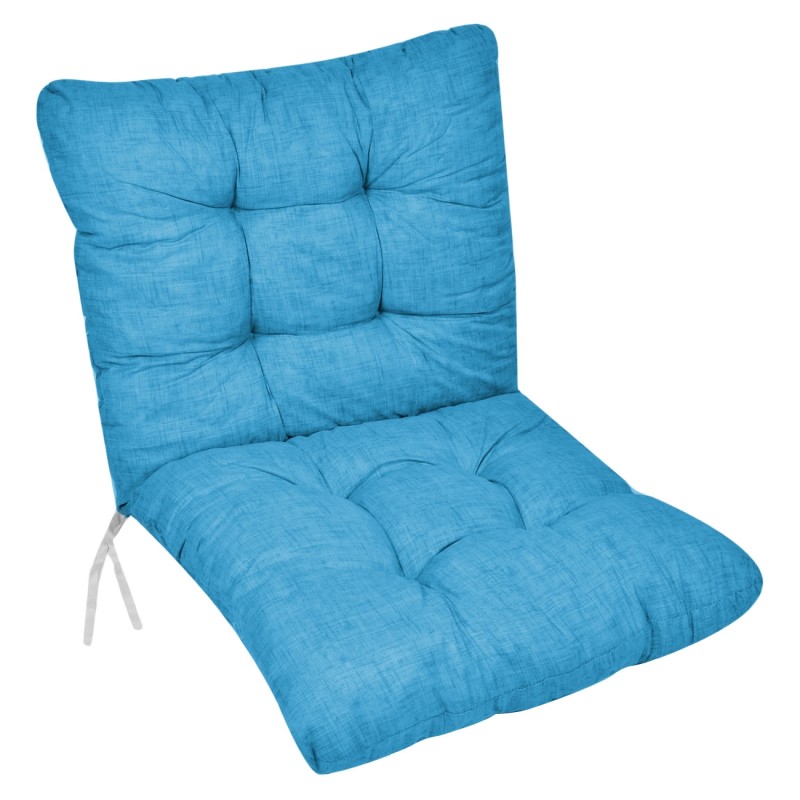 Декоративна възглавница за стол с облегалка, изработена от памук, полиестер и пяна в цвят тюркоаз с практични връзки за лесно прикрепване към стола.