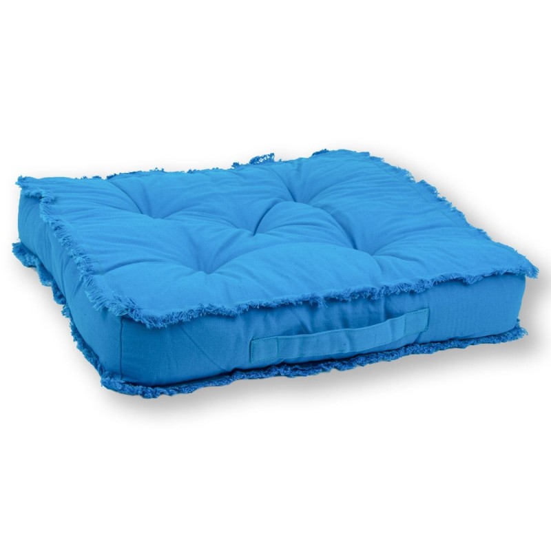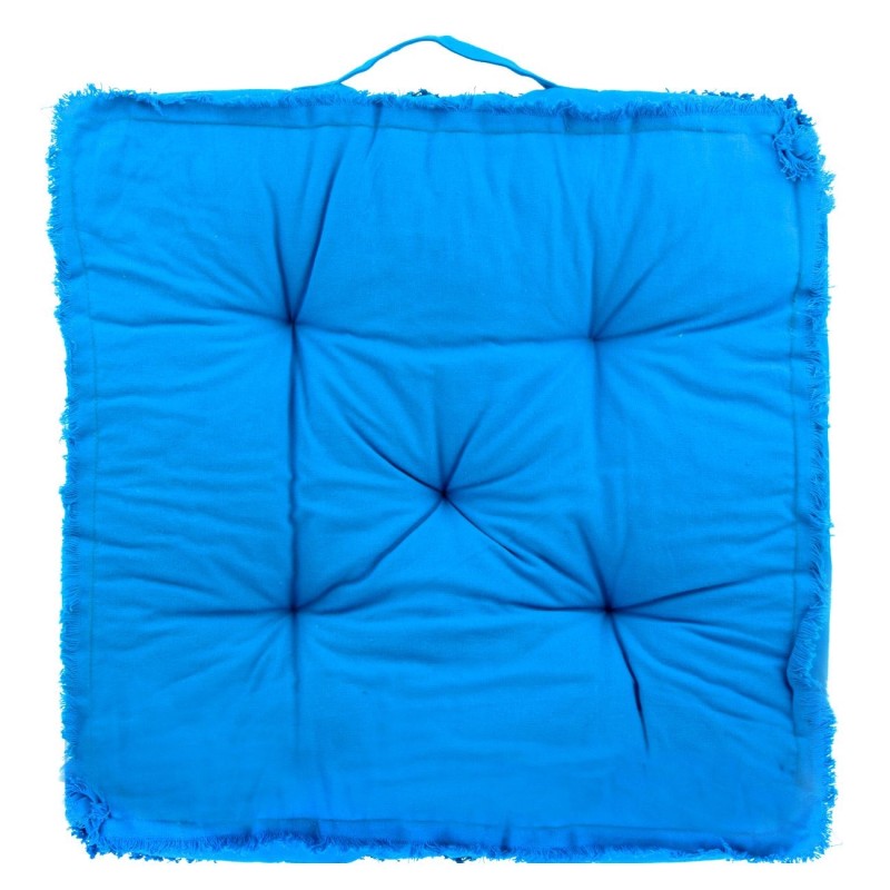 Квадратна декоративна възглавница за стол, изработена от памук в тюркоазено син цвят с удобна дръжка за лесно носене.