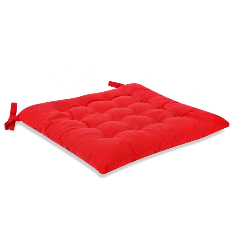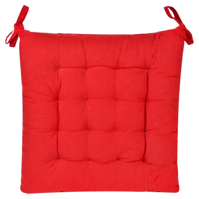 Квадратна декоративна възглавница за стол, изработена от памук в червен цвят с практични връзки.
