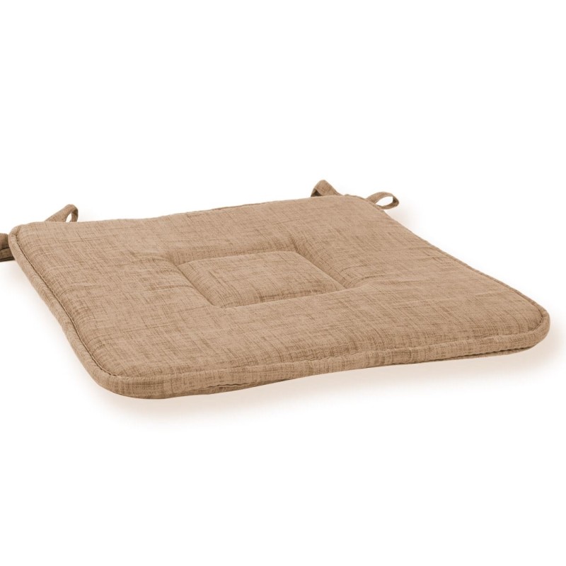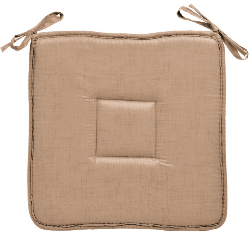 Квадратна декоративна възглавница за стол, изработена от памук, полиестер и дунапрен в бежов цвят с удобни връзки.