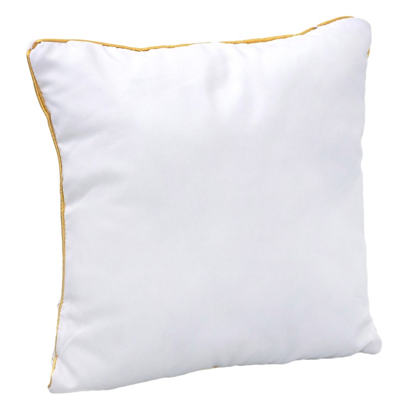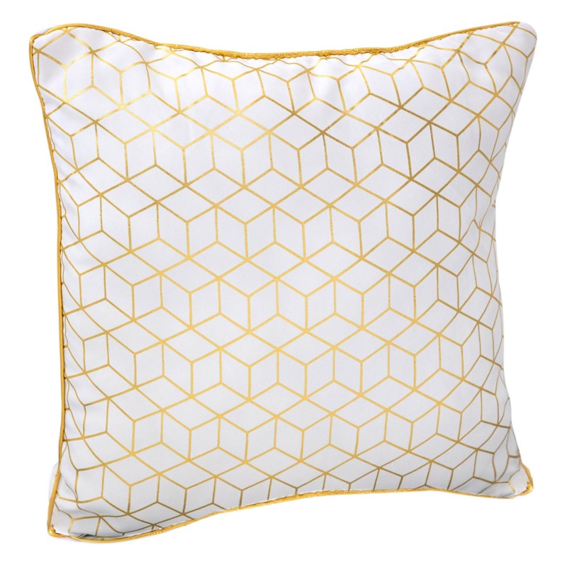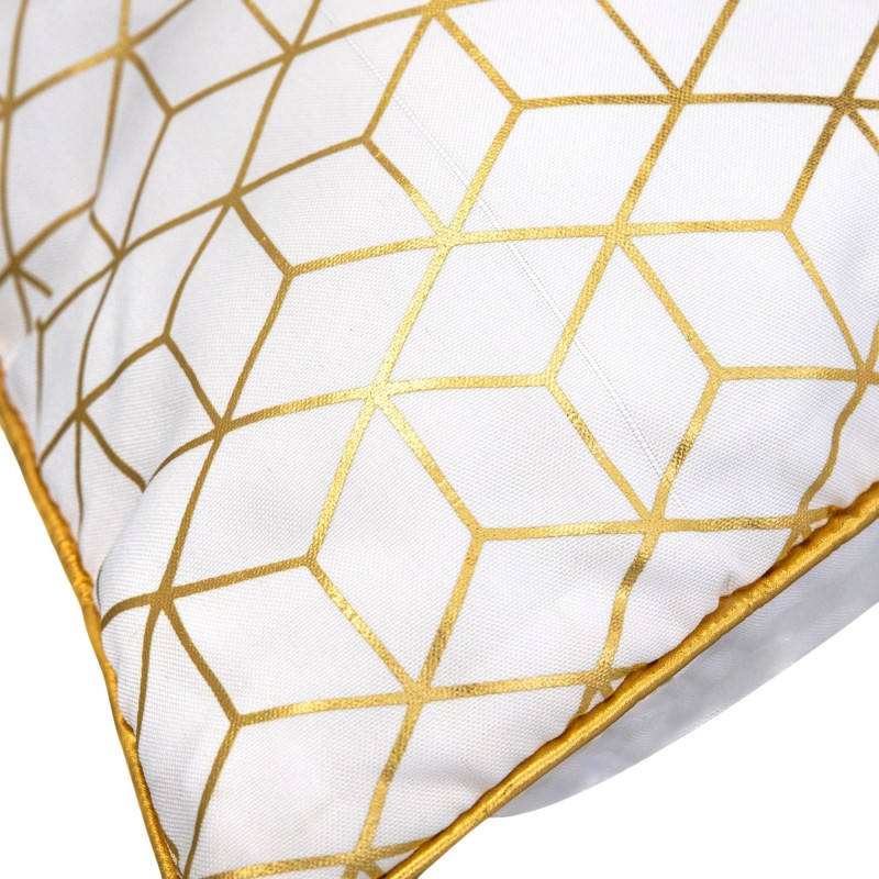 Декоративна възглавница, изработена от полиестер в бял цвят с принт на златисти ромбоиди.
