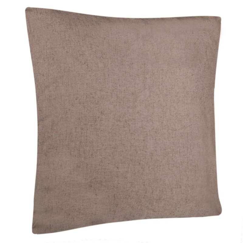 Квадратна декоративна възглавница, изработена от полиестер и лен в кафяв цвят.