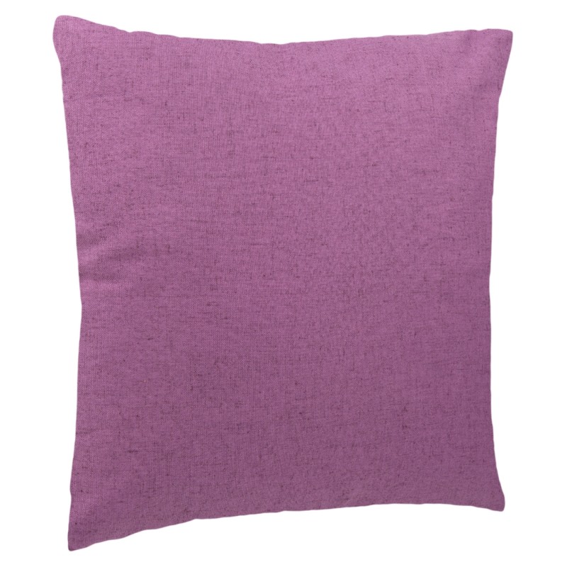 Квадратна декоративна възглавница с цип, изработена от полиестер и лен в лилав цвят.
